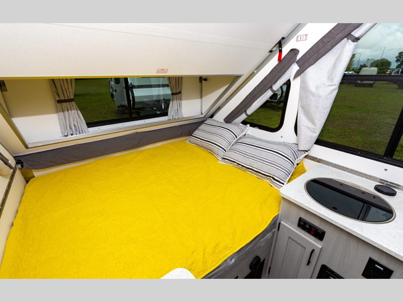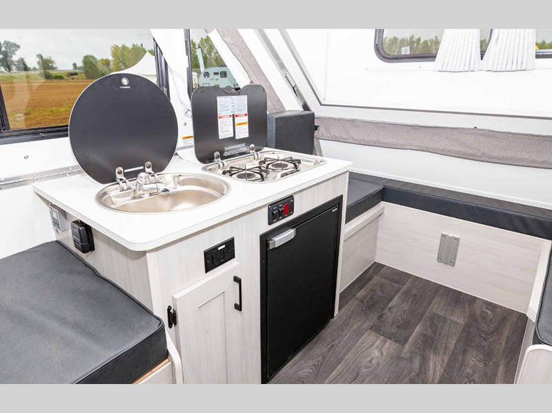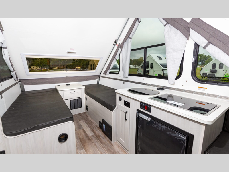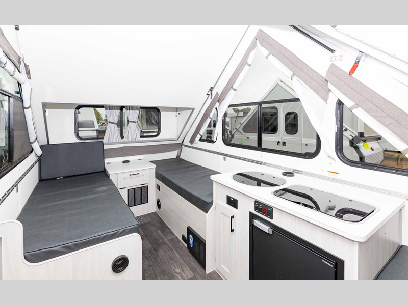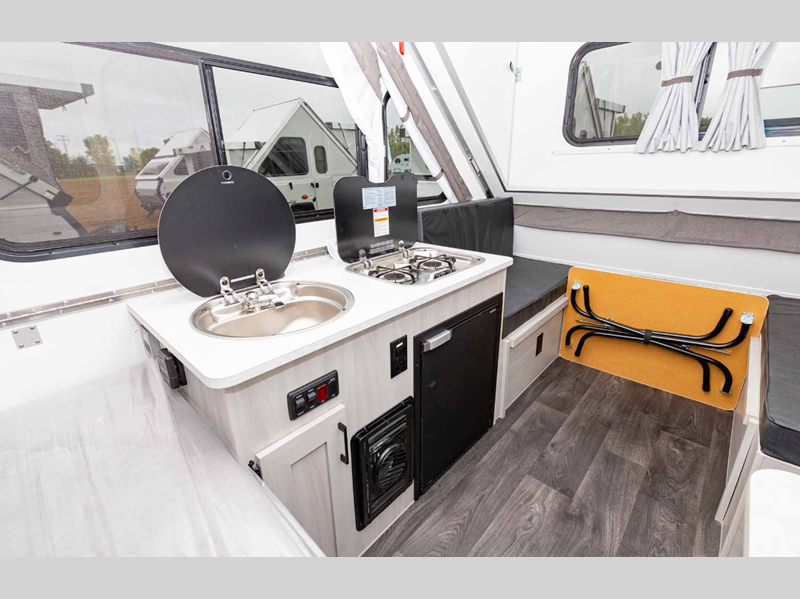 Aliner Classic A-frame Permanent Bed highlights: Under-Dinette Storage Sink ... more about Classic Permanent Bed