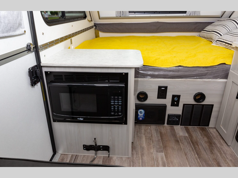 Each camper includes aluminum wheels, vacuum bonded wall construction, and a Dexter rubber torsion axle for smooth towing! There are two exterior baggage doors for your luggage, an outside shower to wash off hiking gear, and front utility lights to name a few outdoor conveniences. Head inside to find LED lights, electrical outlets, and an 18,000 BTU furnace to keep you comfortable!