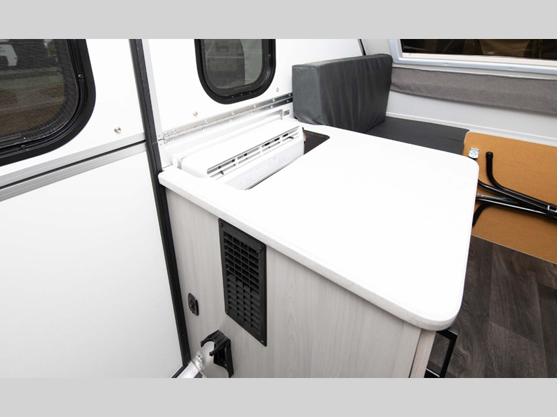 Aliner Ranger A-frame camper 10 Rear Dinette highlights: Rear Dinette Storage ... more about Ranger 10 Rear Dinette