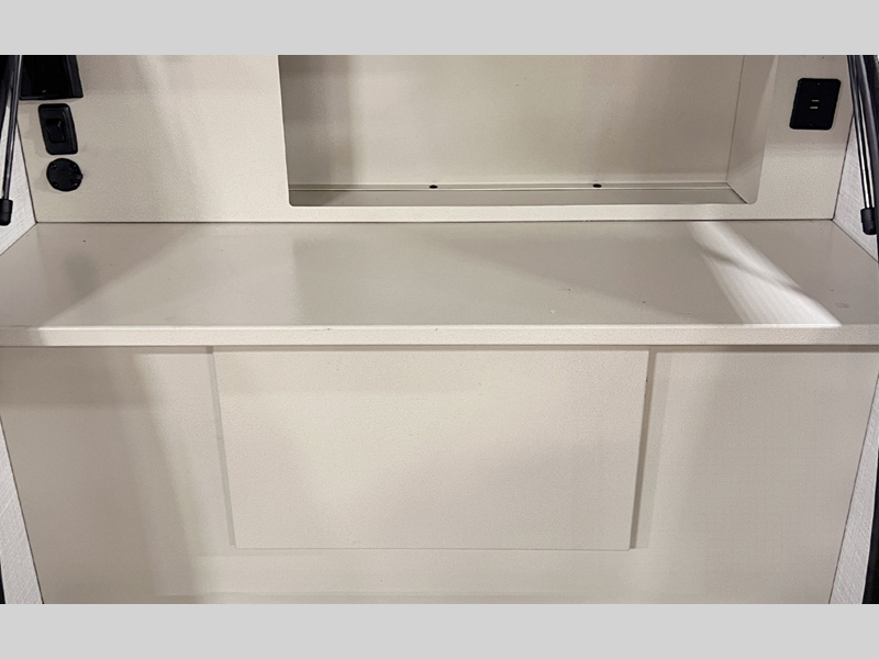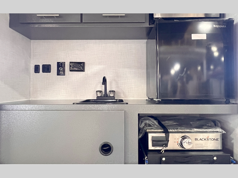 - Exterior kitchenette w/ microwave, 12V refrigerator, & Blackstone Griddle (10ROK, 12ROK)