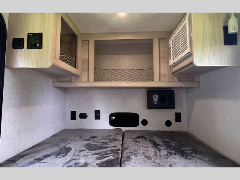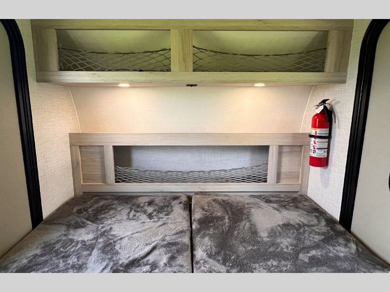 Each unit is built with heavy-gauge, powder-coated aluminum fenders and a welded, aluminum framed main coach-body for a durable trailer made to last. You'll also find Keyed Alike doors, a side-entry doorway, and oversized, dual lockable entry doors with a built-in slider window. Interior comforts include LED lighting, multiple 110V, 12V, and USB outlets, and oversized storage cabinets with netting to keep your things organized.