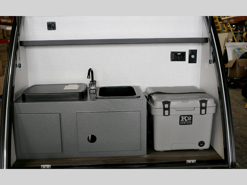 - Integrated sink with 26 gallon fresh water tank and 12V water pump (N/A 7ROD)