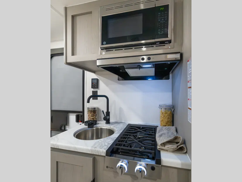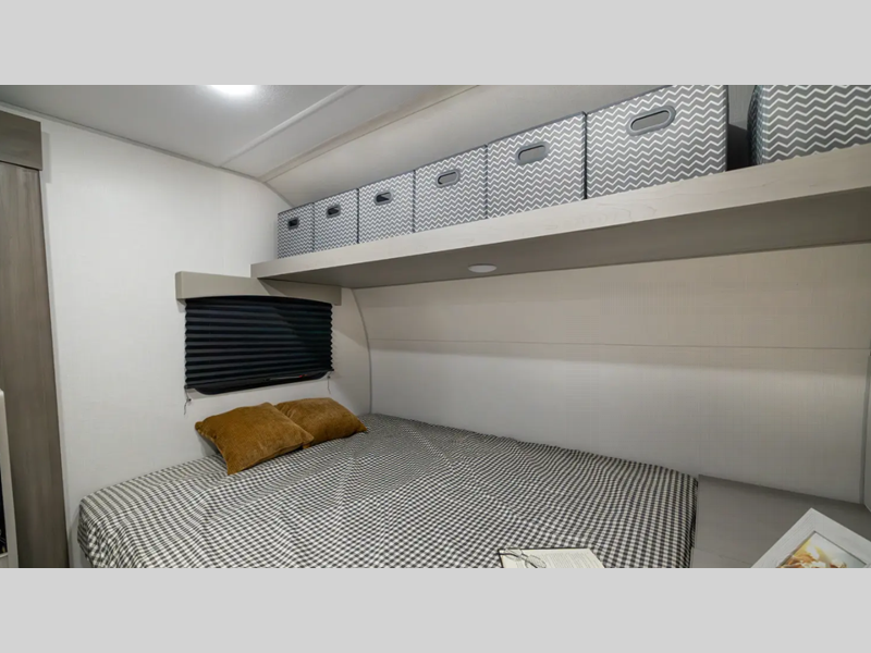 Sleeps 7 Length 23 ft Ext Width 8 ft Ext Height 10 ft Hitch Weight 445 lbs GVWR 4088 lbs Dry Weight 3479 lbs Cargo Capacity 609 lbs Fresh Water Capacity 40 gals Grey Water Capacity 32 gals Black Water Capacity 32 gals Furnace BTU 20000 btu Number Of Bunks 2 Available Beds Queen Refrigerator Type GE 12V Refrigerator Size 10 cu ft Cooktop Burners 2 Shower Size 24" x 36" Number of Awnings 1 Water Heater Type Tankless on demand AC BTU 13500 btu Awning Info 9' Power with LED Light Strip Axle Count 1 Shower Type Standard Similar Floorplans