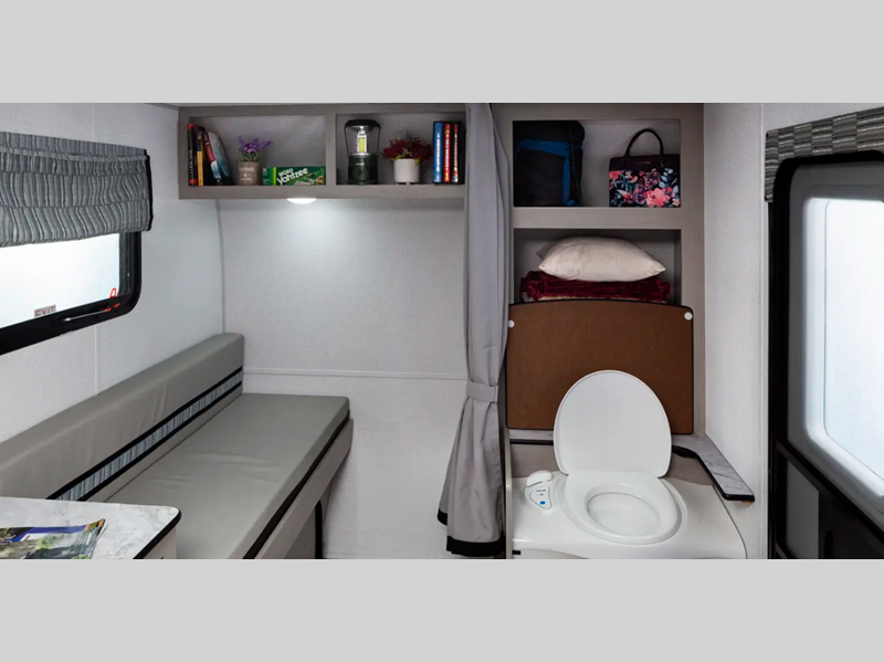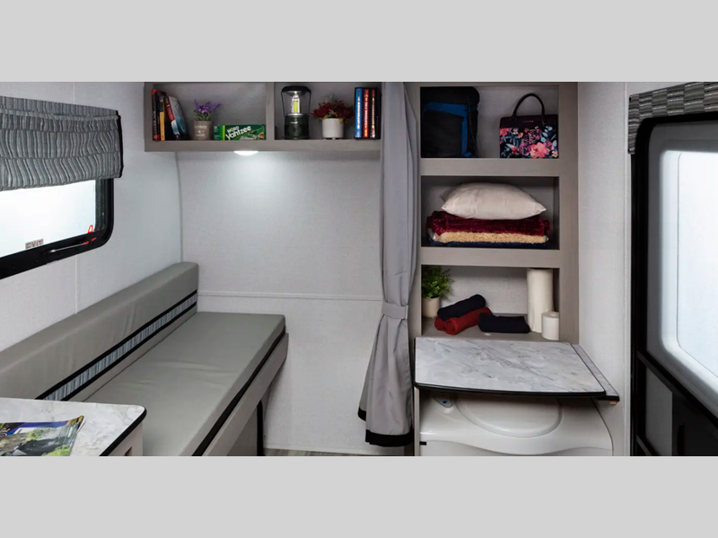 You'll enjoy the ROK Camping Made Easy Package with an outside shower, exterior LED lighting, and 7-way hooks. There are also tinted windows, a 12V power fan, plus 12V outlets and a USB charging port to keep your electronics charged. Each model also includes an ROK Kitchen Package that will allow you to cook and store meals each day!
