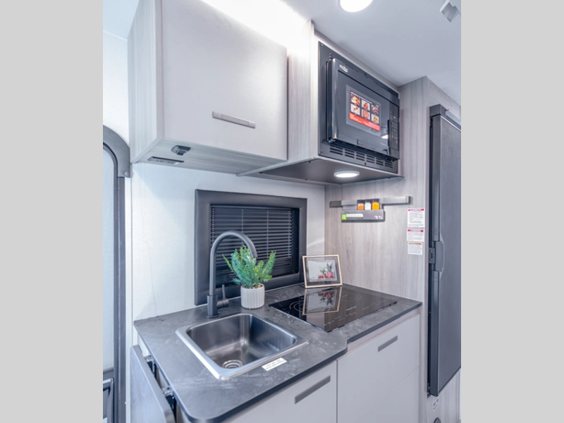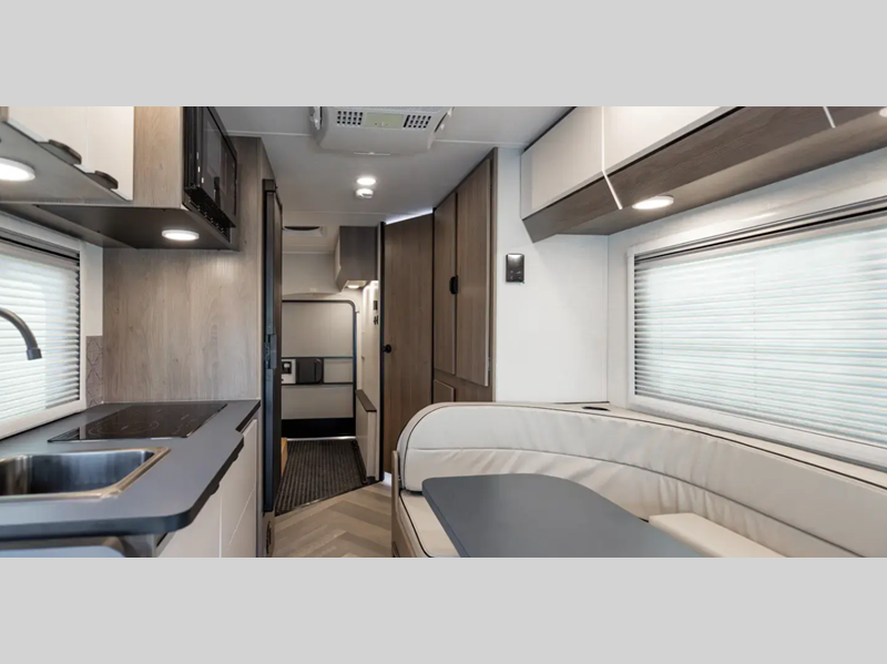 Sleeps 4 Length 24 ft 2 in Ext Width 7 ft 7 in Ext Height 10 ft 4 in Int Height 0 ft Hitch Weight 4000 lbs GVWR 11000 lbs Fresh Water Capacity 41 gals Grey Water Capacity 59 gals Black Water Capacity 28 gals Fuel Type Gasoline Engine 3.5L EcoBoost Chassis Ford Transit AWD Fuel Capacity 31 gals Wheelbase 156 in Available Beds Murphy Double Refrigerator Type 12V Convection Cooking Yes Cooktop Burners 2 Shower Size 24" x 32" Number of Awnings 1 Axle Weight Front 4630 lbs Axle Weight Rear 7275 lbs LP Tank Capacity 70 lbs. Water Heater Type Tankless AC BTU 15000 btu Basement Storage 47 cu. ft. TV Info Removable Smart TV Awning Info 14' Armless Gross Combined Weight 15000 lbs Shower Type Standard Similar Floorplans