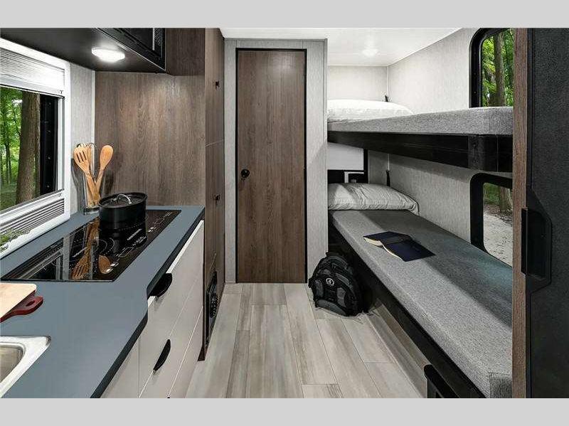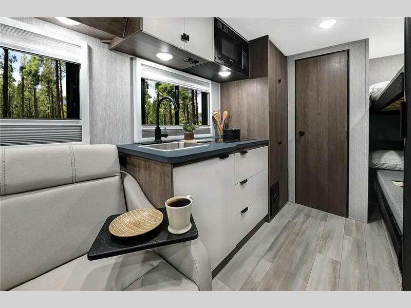 Sleeps 4 Length 24 ft 1 in Ext Width 7 ft 7 in Ext Height 10 ft 6 in Int Height 6 ft 7 in Hitch Weight 4000 lbs GVWR 11000 lbs Dry Weight 8532 lbs Cargo Capacity 2050 lbs Fresh Water Capacity 25 gals Grey Water Capacity 31 gals Black Water Capacity 31 gals Fuel Type Gas Engine V6 3.5L EcoBoost Chassis Ford Transit T350 Horsepower 310 hp Fuel Capacity 31 gals Wheelbase 156 in Number Of Bunks 2 Torque 400 ft-lb Refrigerator Type Three Way Cooktop Burners 2 Shower Size 24" x 24" Number of Awnings 1 Axle Weight Front 4630 lbs Axle Weight Rear 7275 lbs LP Tank Capacity 68 lbs. Water Heater Type Tankless TV Info Cabover TV Awning Info 14' Armless with LED Lights and Sensor Gross Combined Weight 15000 lbs Shower Type Wet/Bath Shower Similar Floorplans