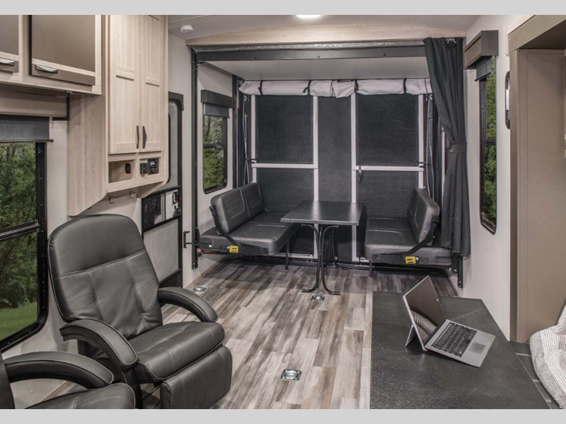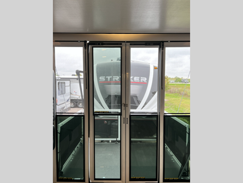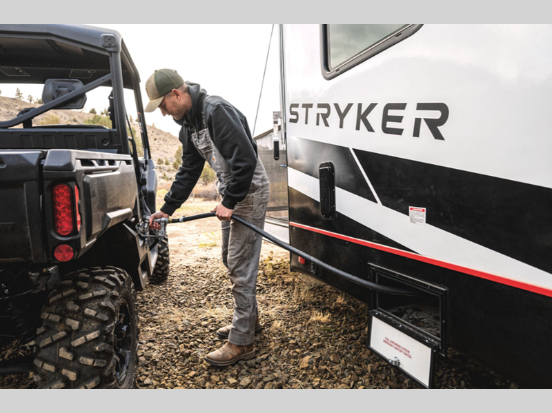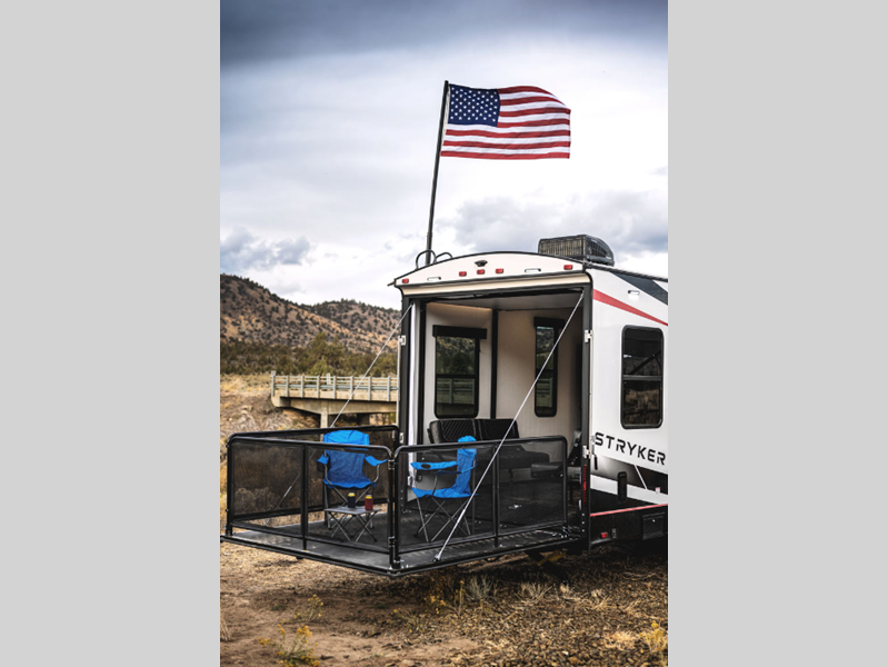 Each Stryker is constructed with Azdel composite laminated sidewalls, a painted molded fiberglass front cap, and 5/8" tongue and groove plywood flooring for durability. You will love the larger windows with blackout roller shades, and the premium sound system with an amplifier, subwoofer, and indoor/outdoor speakers to keep the party going. Some of the convenient outdoor features you will appreciate are the XL baggage doors, the power tongue and stabilizer jacks, the large power awning with LED lights, and much more!