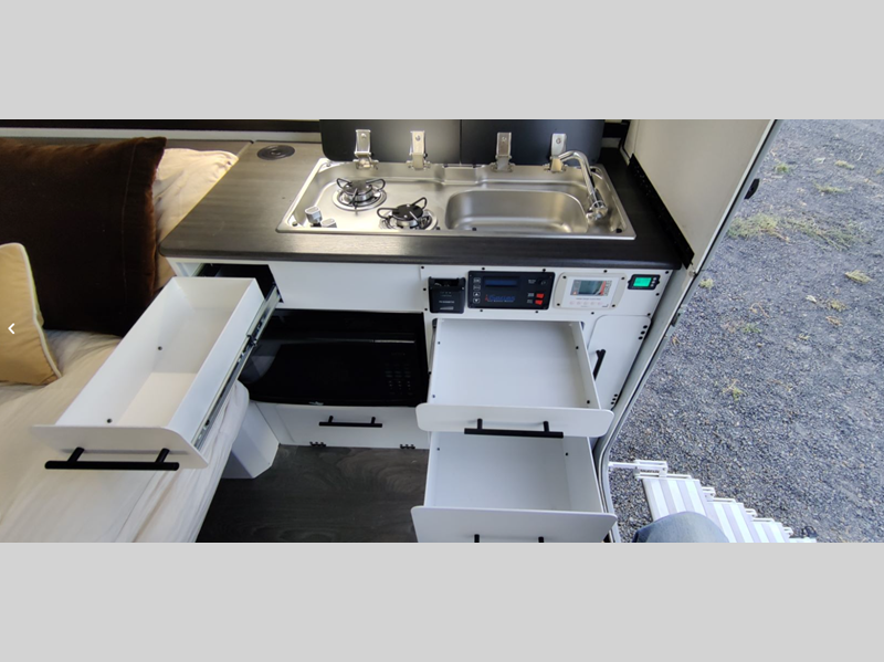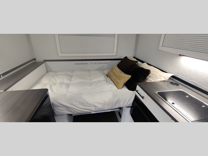 Sleeps 3 Length 7 ft 4 in Ext Width 7 ft 4 in Ext Height 4 ft 4 in Int Height 6 ft 6 in Dry Weight 1206 lbs Fresh Water Capacity 21 gals Grey Water Capacity 10 gals Furnace BTU 18000 btu Cooktop Burners 2 Water Heater Capacity 1.7 gal Water Heater Type 12V Truck Bed Size Ultra Short to Long Body Style Pop-Up Electrical Service 30 amp