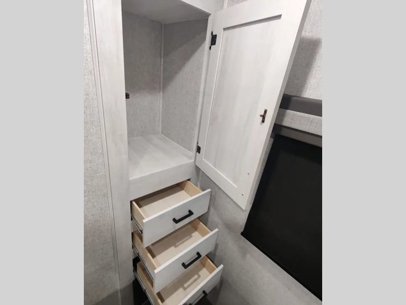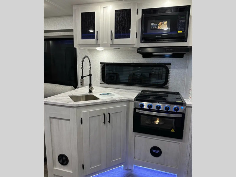 Sleeps 3 Slides 1 Length 24 ft 1 in Ext Width 8 ft Ext Height 11 ft 2 in Hitch Weight 740 lbs GVWR 7740 lbs Dry Weight 5293 lbs Cargo Capacity 2447 lbs Fresh Water Capacity 53 gals Grey Water Capacity 60 gals Black Water Capacity 30 gals Furnace BTU 35000 btu Available Beds Queen Refrigerator Type 12V Residential Inspired Refrigerator Size 10.7 cu ft Cooktop Burners 3 Number of Awnings 1 Water Heater Type On Demand Tankless AC BTU 15000 btu Awning Info 16' Power Axle Count 2 Shower Type Radius Electrical Service 50 amp -