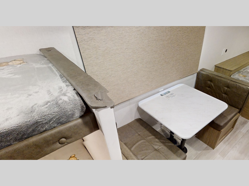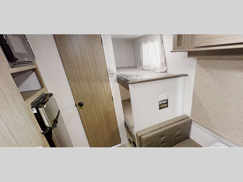Sleeps 5 Length 22 ft 10 in Ext Width 8 ft Ext Height 10 ft 5 in Hitch Weight 380 lbs GVWR 4780 lbs Dry Weight 3319 lbs Cargo Capacity 1461 lbs Fresh Water Capacity 42 gals Grey Water Capacity 22 gals Black Water Capacity 22 gals Number Of Bunks 2 Available Beds RV Queen Refrigerator Type Electric Refrigerator Size 4.4 cu ft Cooktop Burners 2 Number of Awnings 1 LP Tank Capacity 20 lbs Water Heater Type Tankless AC BTU 13500 btu Awning Info Power w/LED Light Strip Axle Count 1 Number of LP Tanks 1 Shower Type Tub/Shower Combo Similar Floorplans