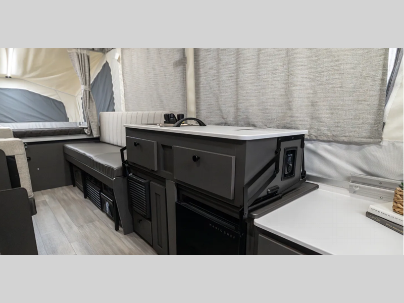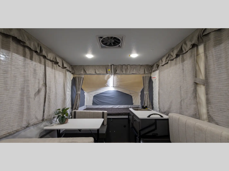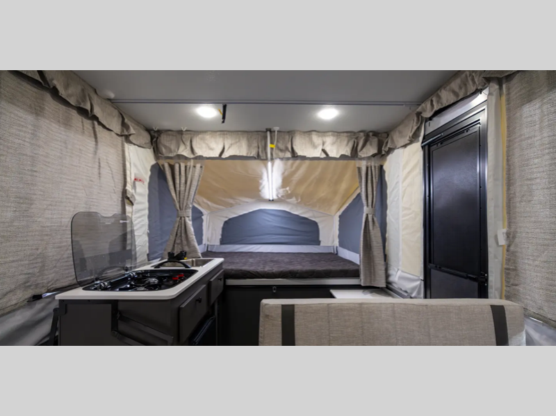 Sleeps 5 Length 11 ft 10 in Ext Width 7 ft Ext Height 5 ft Hitch Weight 250 lbs Dry Weight 1763 lbs Cargo Capacity 583 lbs Furnace BTU 20000 btu Available Beds Two Tent End Beds Refrigerator Type 12V LP Tank Capacity 20 lbs AC BTU 15000 btu Axle Count 1 Number of LP Tanks 2 Shower Type N/A Electrical Service 30 amp Open Length 17 ft 2 in -