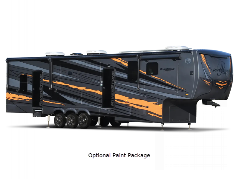 The Forest River RiverStone fifth wheels and toy haulers are super luxurious and convenient for all your camping or full-time needs! These elegant units have standard features that will enhance every aspect of your trip, like a cordless vacuum, 18-cubic foot French door refrigerator with an ice maker, an under-bed storage compartment, and hydraulic slide outs.