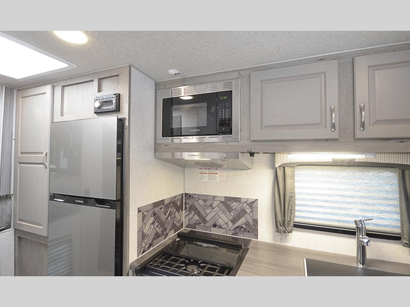 Sleeps 3 Slides 1 Length 17 ft 10 in Ext Width 8 ft 1 in Ext Height 8 ft 7 in Int Height 6 ft 7 in Interior Color Moonstone, Carbon Dry Weight 3235 lbs Fresh Water Capacity 46 gals Grey Water Capacity 39 gals Black Water Capacity 37 gals Furnace BTU 20000 btu Available Beds RV Queen Refrigerator Type 12V Refrigerator Size 8 cu ft Cooktop Burners 3 Number of Awnings 1 Floor Length 10 ft 2 in LP Tank Capacity 30 lbs Water Heater Capacity 6 gal Water Heater Type DSI Gas/Electric Quick Recovery Awning Info Electric with LED Lights Number of LP Tanks 2 Body Style Hard-Side Shower Type Standard -