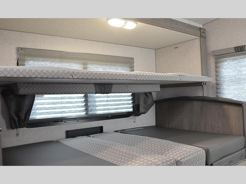 The truck campers are built with fully welded, thick-wall aluminum frame construction with a one-piece, corona treated, continuous fiberglass, and include high density foam block insulation. The interior provides roller bearing drawer glides, fabric night shade window treatments, USB charging ports on both sides of the bed to keep your cellphones ready.