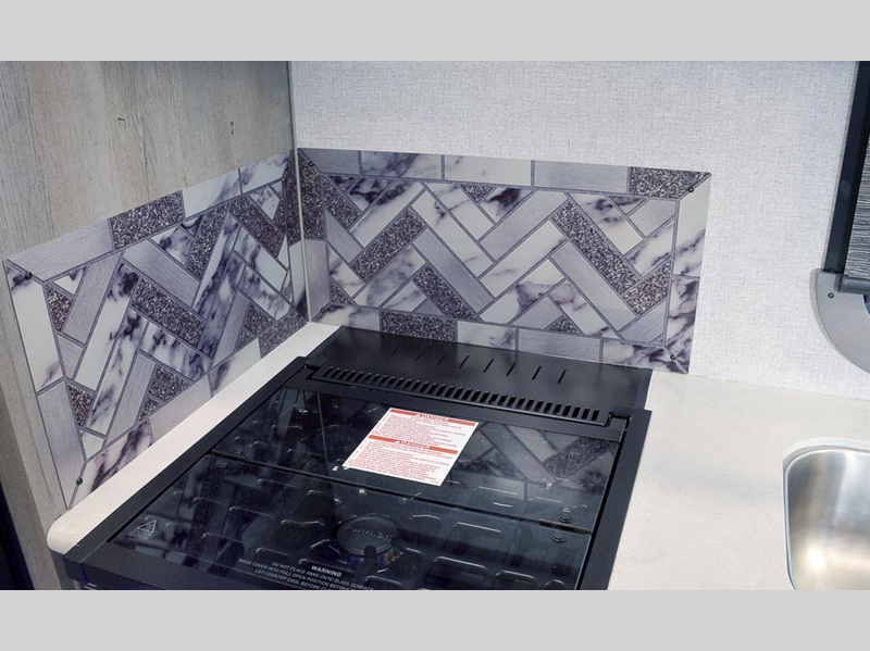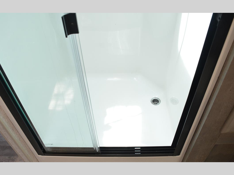 A leveling system will make setting up camp easier than ever, and SolX solar panels will provide off-grid power. Inside, you'll love custom one-piece formed countertops, solid surface kitchen and bath countertops, slow rise night shades, and many more comforts. The exterior is just as convenient with its slam latch luggage doors, outside speakers, heating holding tanks and more!