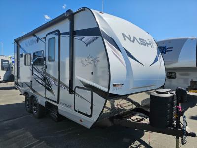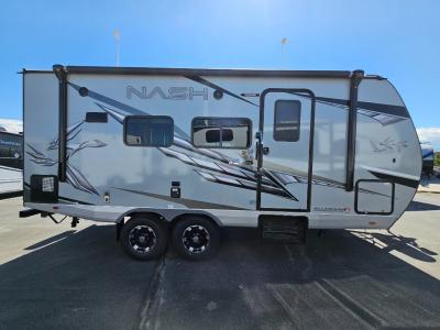 With any Nash travel trailer by Northwood, you can be sure you're getting a durable RV made to last thanks to the fully welded, thick-wall aluminum frame construction and Northwood built Ironhorse chassis. There are also thermal pane windows, Corona treated fiberglass, and all-conditions/four seasons insulation so you can camp in any weather! A pass through storage with an LED light will let you easily store camp gear and the SolX 4 - 400 Watt Solar Package will provide some off-grid capabilities. Head inside to enjoy the cathedral arched ceiling, along with slow rise night shades, a Northwood TruRest mattress, an AM/FM stereo with Bluetooth, and many more at-home comforts.