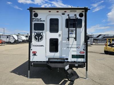 With any Wolf Creek truck camper by Northwood you can camp year around thanks to the high density block foam insulation, thermal pane windows, and the multi-layered substrate walls. The durable fully welded, thick-wall aluminum frame construction will add durability, and the Corona treated fiberglass will help combat leaks so you can enjoy your camper for years to come. Each model includes fabric night shade window treatments, custom one-piece formed countertops and dinette table, hardwood cabinet doors, and many more comforts. You will love the high value features included within the Wolf Pack, such as a Fox Landing ready rear bumper, a premium vent, electric jacks, and outside speakers.
