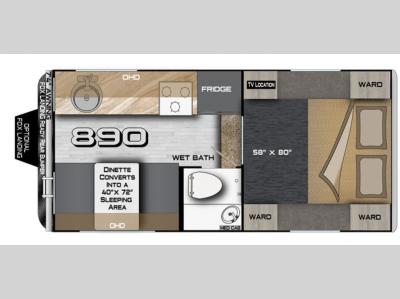 Make your weekend excursions easier than ever in this cozy truck camper for three to four. Since there is a 58" x 80" queen bed up front, you won't have to sleep on the floor, and your guests can sleep on the booth dinette that converts to a 40" x 72" sleeping area. Get cleaned up each day in the convenient wet bath that includes a medicine cabinet and an exhaust fan to keep everything fresh. There is a three burner cooktop and residential-style microwave with an air fryer to prepare meals each day, plus an 8 cu. ft. 12V refrigerator for perishables. This model also includes three wardrobes around the bed for more storage place plus a TV location if you want to add the optional 24" 12V LED TV!